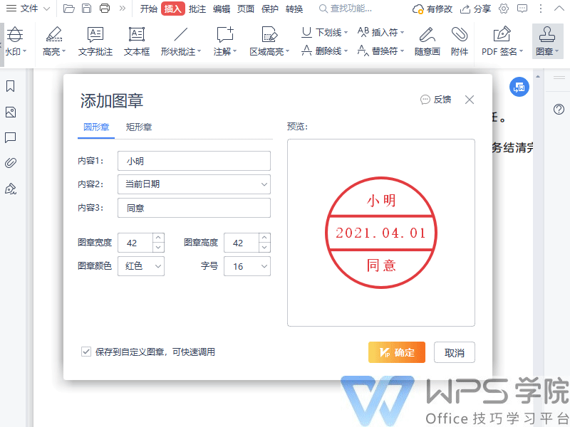 根据需要调整印章边缘、透明度及红色填充,点击【保存】完成印章配置。